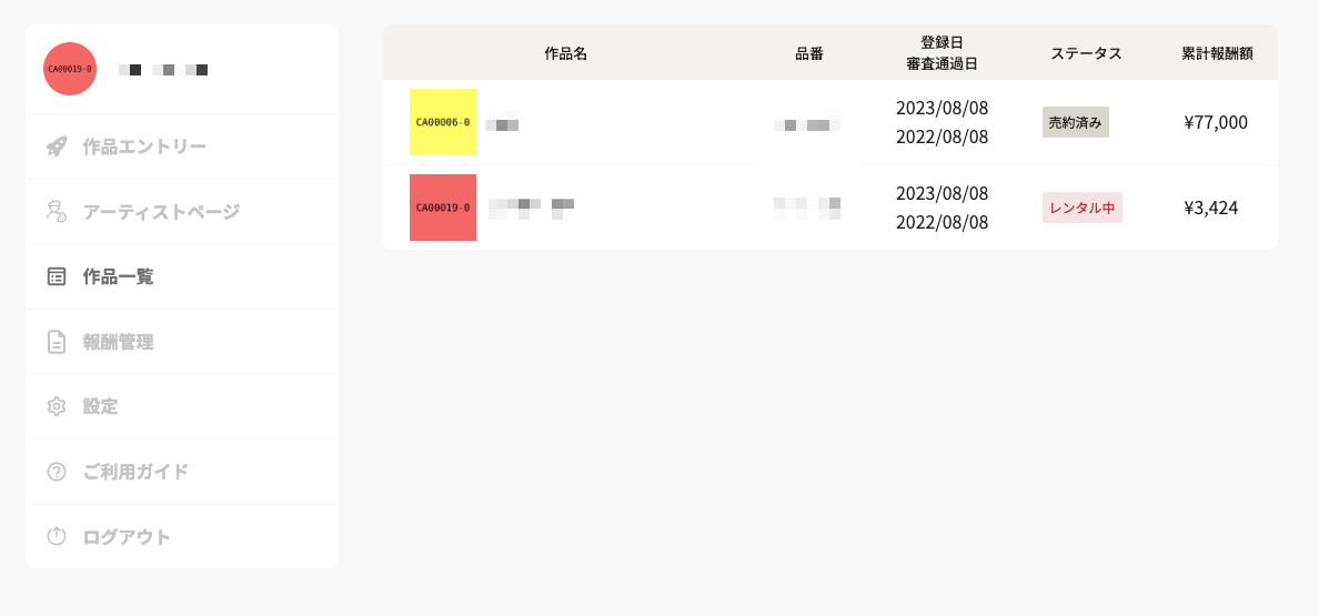 作品一覧(登録日・審査通過日・累計報酬額が追加されます)
