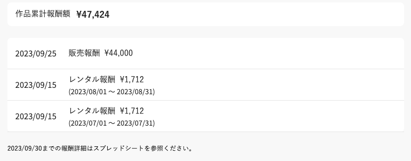 作品単位の報酬一覧