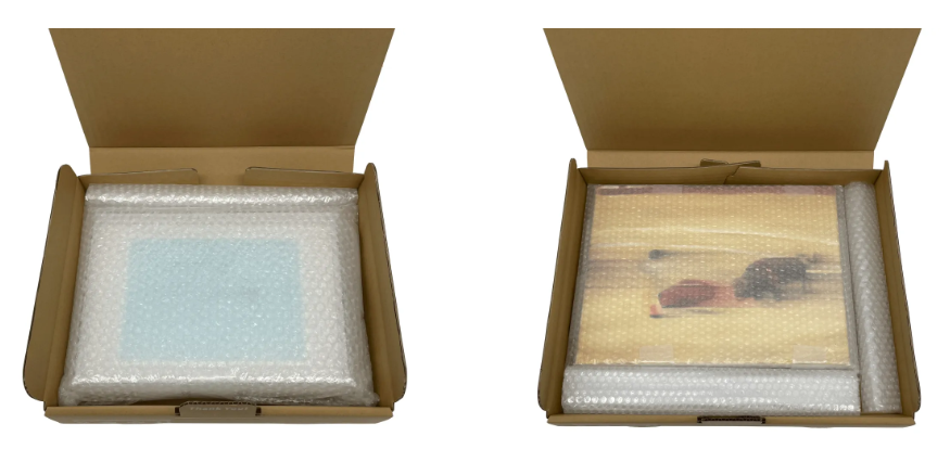 A:作品にプチプチなどを巻いてから箱に入れるのを推奨します。